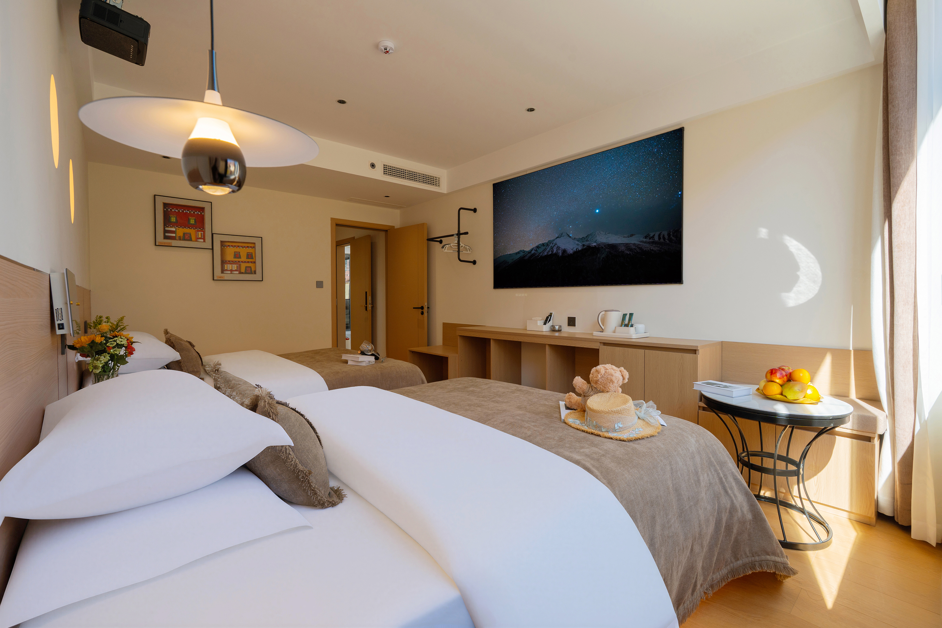 鲸洛·两室套房双床丨弥散供氧丨地暖丨乳胶床垫丨投影